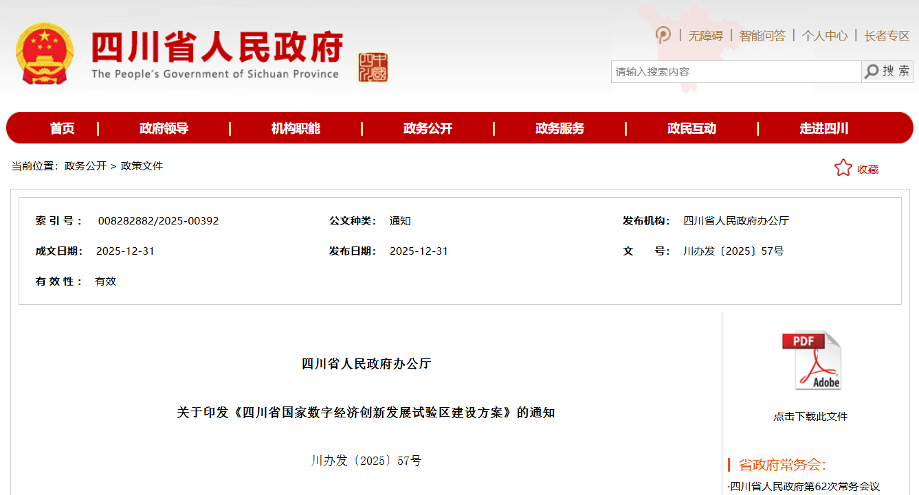 四川省东说念主民政府网站截图